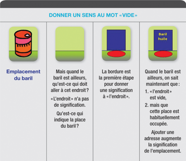 L’objectif est d’instaurer des espaces de travail efficaces qui s’expliquent et se réglementent par eux-mêmes en tout temps, à l’aide de procédures et d’instructions visuelles.